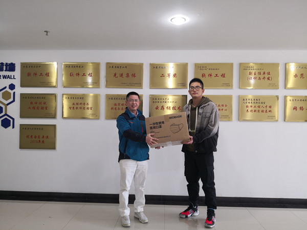 随着新冠肺炎疫情的发展,软件学院为进一步做好学生返校和开学后常态化防疫工作做了大量工作,包坤航同学在疫情期间主动到街道做志愿者,进行体温检测和入户排查工作。临近开学多方筹措购买了一批一次性医用口罩,当谈及捐赠物质的原因时,他说:学校使我们所有学生的大家庭,作为其中一份子,理应为疫情防控工作贡献自己的力量。