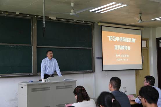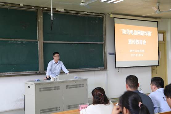 为增强威尼斯官网学生识骗防骗意识,提高防范电信网络诈骗能力, 5月8日上午,威尼斯9499登录入口在教学楼1432教室举办“防范电信网络诈骗”宣传教育会。院党委书记徐志国、党委副书记徐斌、全体辅导员、团总支学联全体干部及各班学生代表参加了本次会议,会议由学工办主任张理航主持。