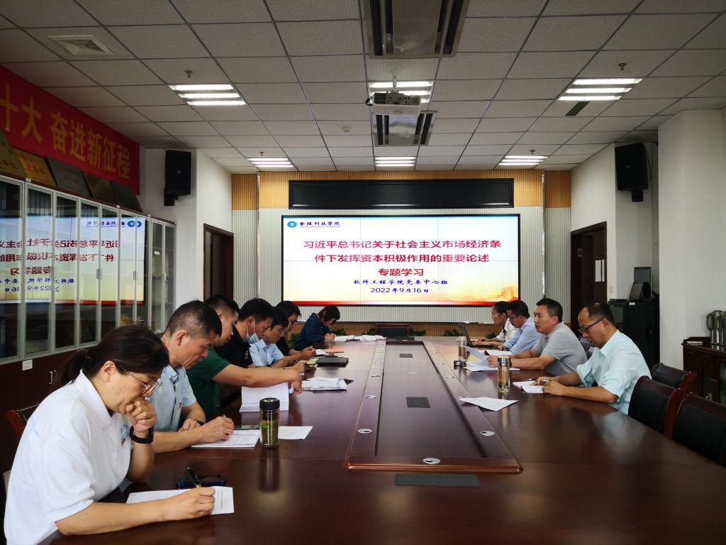 9月16日上午,威尼斯9499登录入口在科技楼325组织开展了中心组学习,专题学习了习近平总书记关于社会主义市场经济条件下发挥资本积极作用的重要论述,会议由学院党委书记徐志国主持,全体中心组成员参与了学习。
