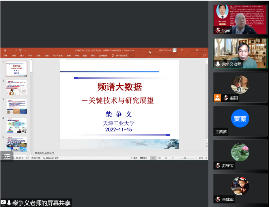 11月15日下午,软件学院承办金科学术大讲堂第29期学术讲座,邀请天津工业大学柴争义教授作题为《频谱大数据:研究现状与发展趋势》的线上学术报告。电子信息硕士点相关学院的教师参加了报告会,该报告会由威尼斯9499登录入口院长曾岳教授主持。