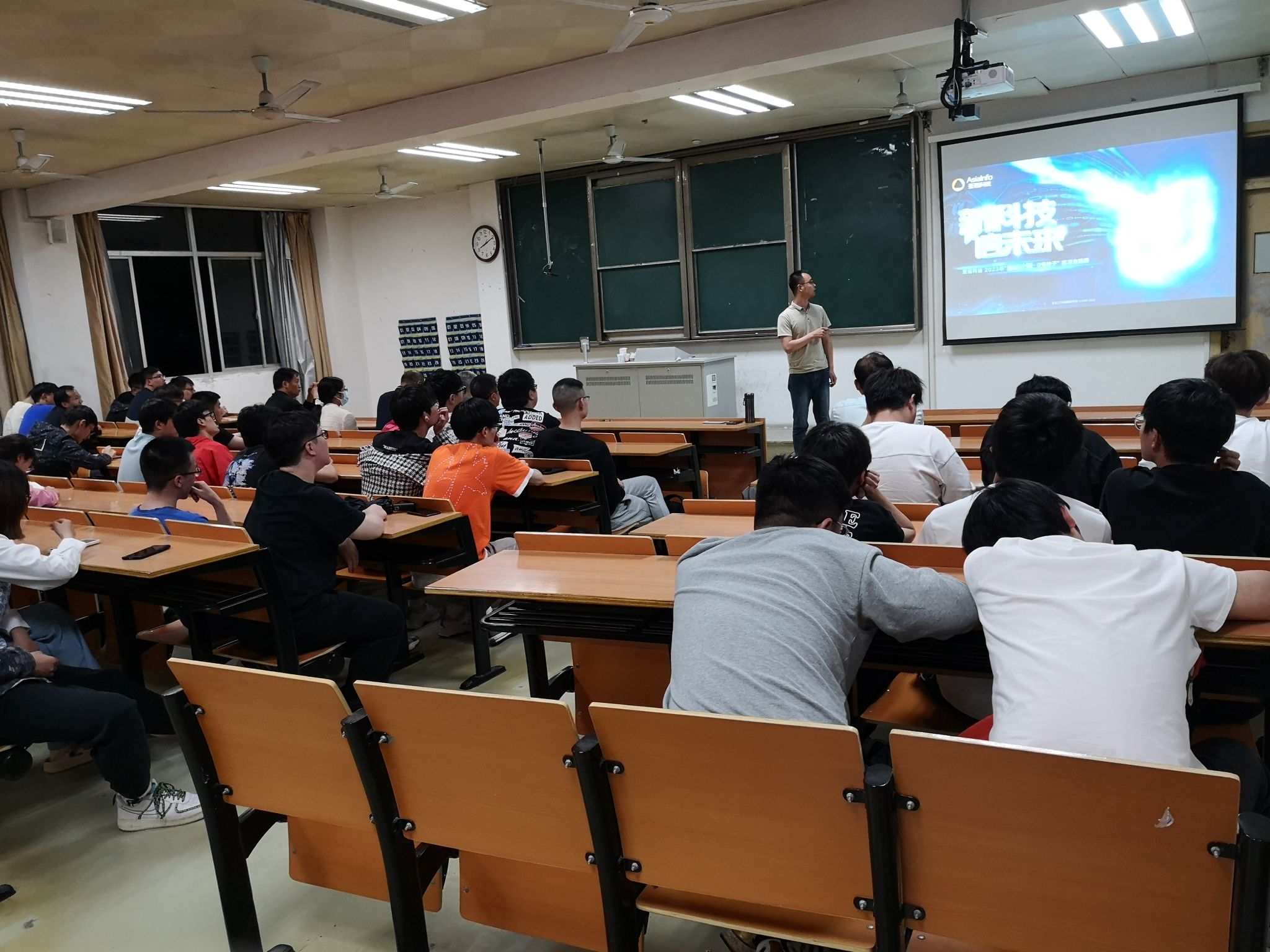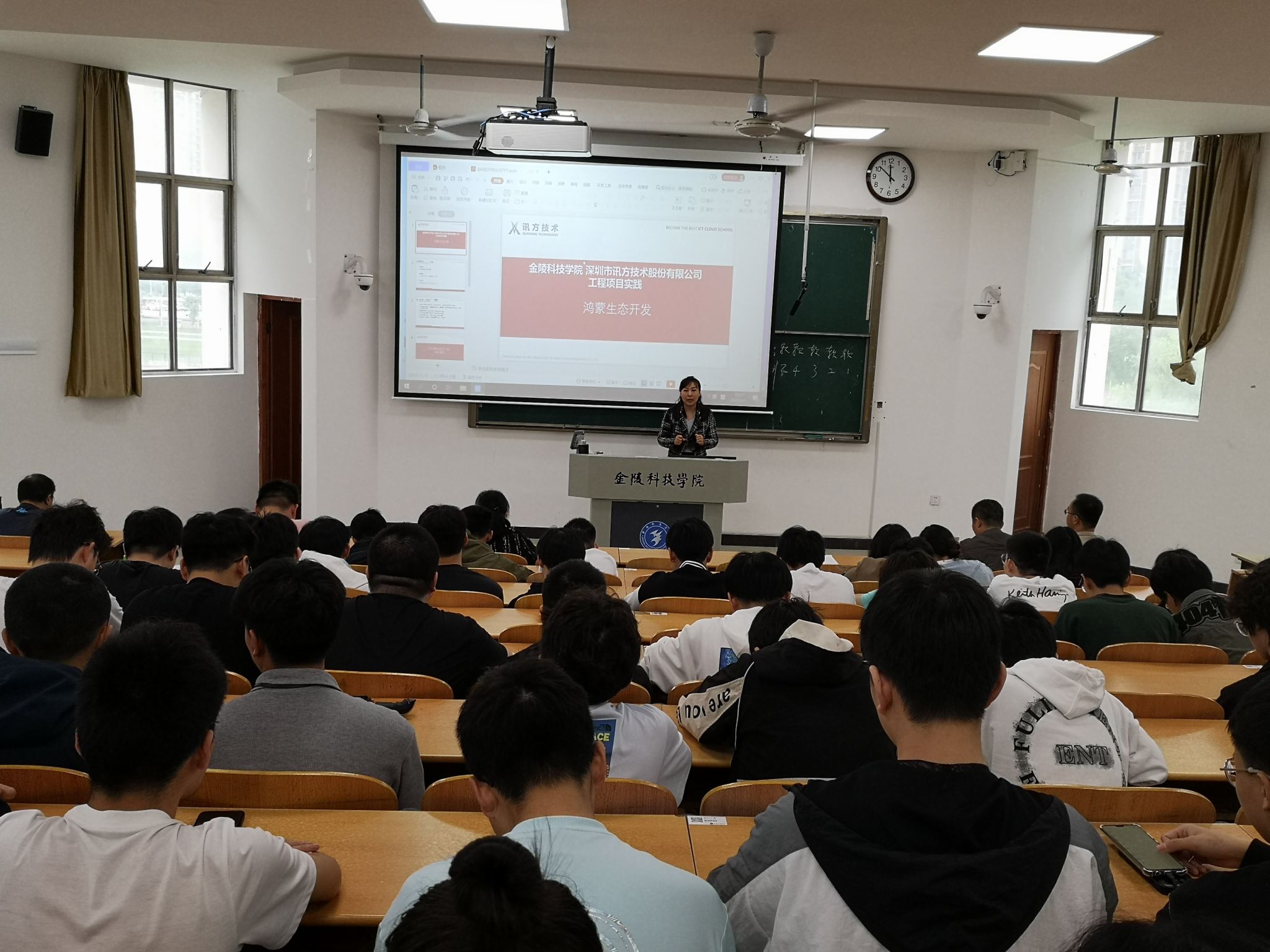 实习基地深圳讯方杨丽华老师,中软国际袁建龙总经理,分别从实习的具体周期安排、实习内容、外地实习场所环境等进行详细介绍,并解答同学的提问。亚信科技施俊斌总经理对2023年亚信顶岗实习生进行了招聘宣讲,详细讲述了在杭州南京工作的亚信实习生的待遇条件、职业规划等,欢迎同学们投简历入职亚信科技。