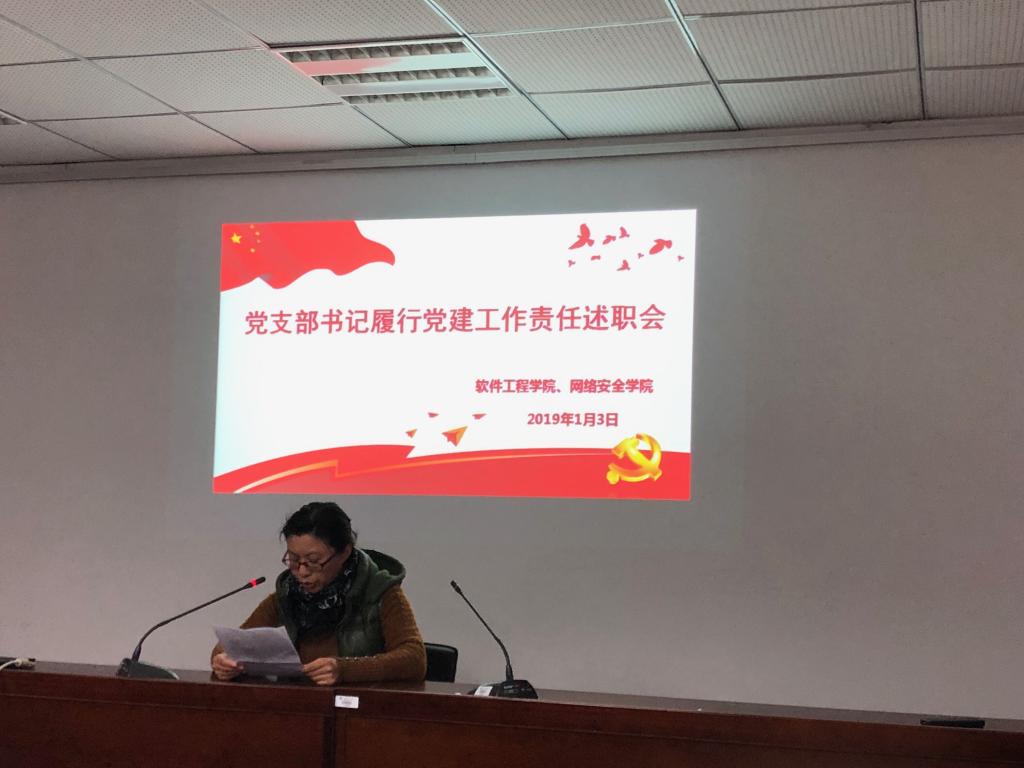 2019年1月3日上午,威尼斯9499登录入口、网络安全学院党委所辖师生党支部书记开展述职工作专题活动。学院全体党员参加此次支部书记述职报告会。王智钢、王爱侠、胡国兵、邵彦婷4位党支部书记依次上台做述职报告,学院指定专职组织员做好会议记录。