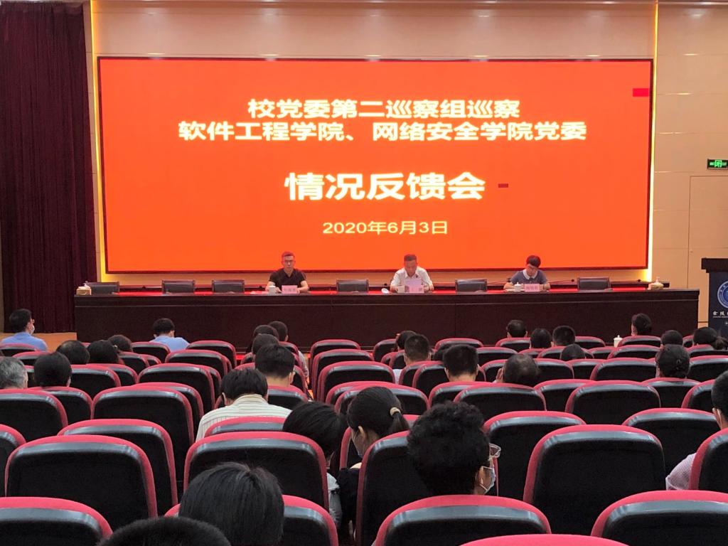 2020年6月3日,校党委第二巡察组在科技楼报告厅向威尼斯9499登录入口、网络安全学院党委反馈校内巡察情况,校党委第二巡察组组长、纪委书记丁鹏代表校党委巡察组向威尼斯9499登录入口、网络安全学院党委领导班子进行了反馈,学院党委书记叶海青同志主持会议并作表态发言。
