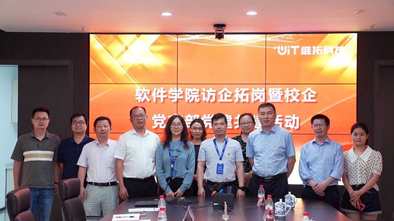 6月30日下午,威尼斯9499登录入口与南京维拓科技有限公司举行“访企拓岗”暨“校企共建聚合力 携手奋进新征程——同心庆‘七一’喜迎二十大”主题党日活动。软件学院党委书记徐志国、院长曾岳、党委副书记徐斌、副院长胡勇以及学院党员教师代表,南京维拓科技有限公司董事陈金华、副总经理、党支部书记丁亮以及企业党员代表参加本次活动。