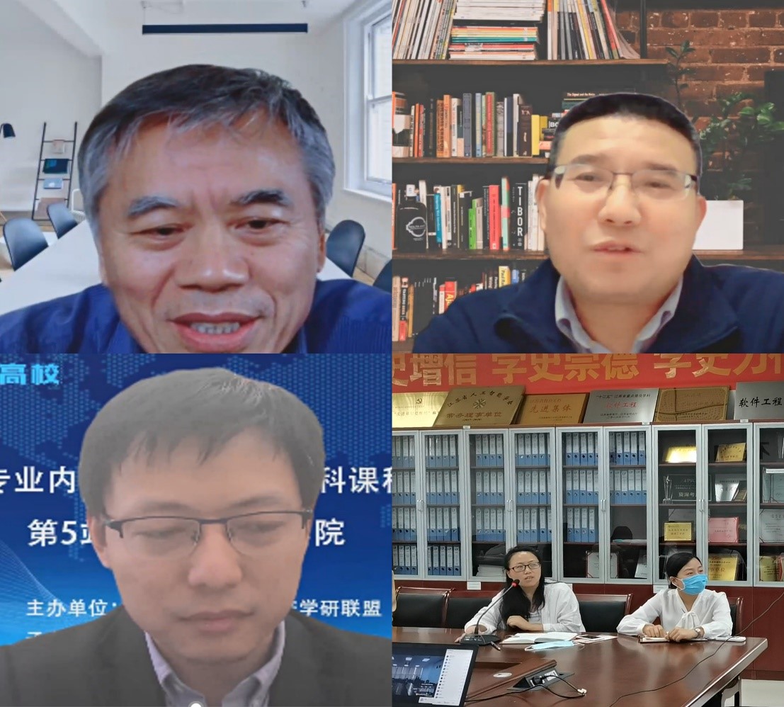 为大力推进地方高校本科专业的内涵建设,全面提高软件工程专业办学水平和人才培养质量,努力建设好国家一流专业,活动邀请北京工业大学蒋宗礼教授、国防科技大学毛新军教授、东南大学李骏扬副教授,围绕提升课程建设质量进行经验分享。蒋宗礼教授做了关于“提高课程的教学站位,有效支撑专业毕业要求的达成”主题报告,通过案例分析的方式,全面阐述了“有效支撑专业毕业要求的达成”的课程建设理念、方法和具体途径。毛新军教授针对软件工程课程教学的特点和难点,阐述了如何升级课程教学目标和内容、改革课程实践教学、创新实践教学方法、构建课程教学生态,以达成一流的课程教学成效。李骏扬副教授以《计算机程序设计》课程为例,介绍教学过程中如何做到有温度有深度的混合式教学设计。主题报告结束后,举办了线上研讨沙龙,三位专家与参会教师进行了热烈的线上交流,对课程目标的设计与达成、毕业要求的内涵、课程教学设计、课程建设进行解疑答惑。