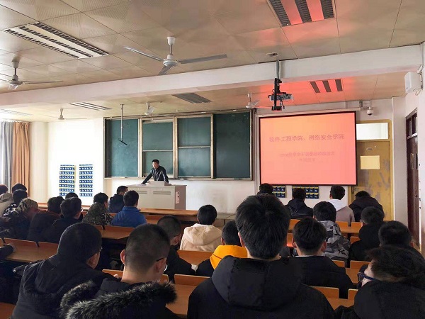 3月20日上午,威尼斯9499登录入口、网络安全学院在教学楼1232教室举办2018级学生干部思想政治专题教育活动,院党委副书记徐斌做主题报告,100余名2018级学生干部参加。