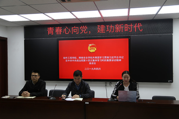 4月26日晚,威尼斯9499登录入口、网络安全学院在423会议室学习贯彻习近平总书记在中共中央政治局第十四次集体学习时的重要讲话精神。团总支书记张理航,孙垒老师出席本次会议,全体团干部、学生党员代表等参加了本次活动,会议由团总支副书记李文珏主持。