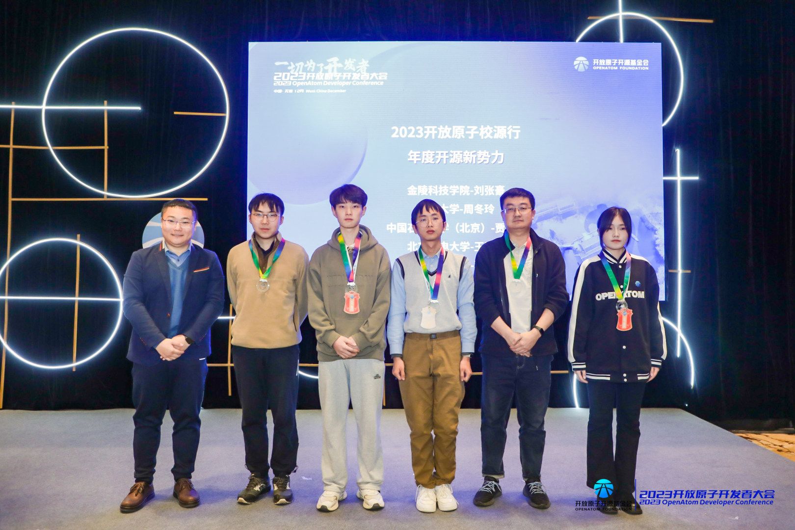大会上举行了开放原子云社区成立仪式,为开放原子开源大赛获奖选手颁奖,我社的刘张豪同学荣获“2023开放原子校源行年度开源新势力”的称号,威尼斯官网的开放原子开源社团荣获“2023开放原子校源行年度开源社团”的称号。社团成员参与了以“新时代,新开发者”为主题的圆桌对话。