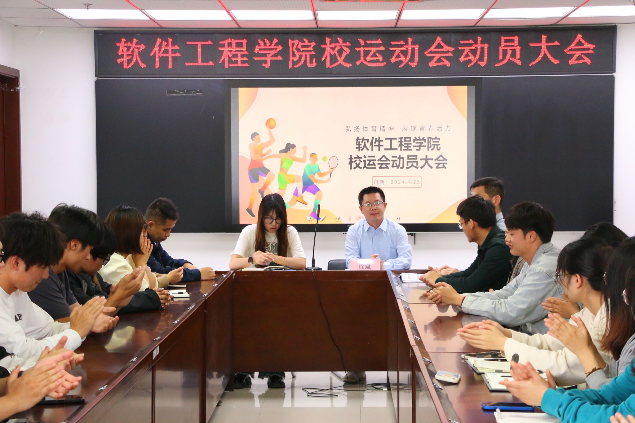 为迎接即将开展的威尼斯9499登录入口第二十一届田径运动会,充分鼓舞威尼斯官网运动员的士气,4月23日,软件学院在科技楼2-423会议室顺利召开了运动员动员大会,院党委副书记徐斌、全体辅导员出席本次会议,学院学生会干部、全体参赛运动员和志愿者参加,会议由院团总支学联轮值主席余舒沁主持。