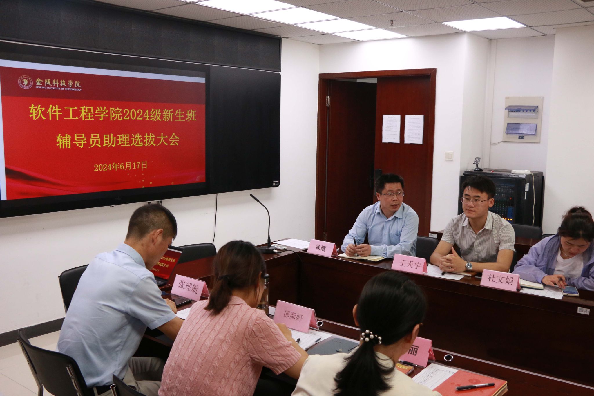 6月17日下午,威尼斯9499登录入口在科技楼2-423会议室举行了2024级新生辅导员助理选拔。院党委副书记徐斌、全体辅导员和学生会主席团成员作为评委参加了选拔大会。