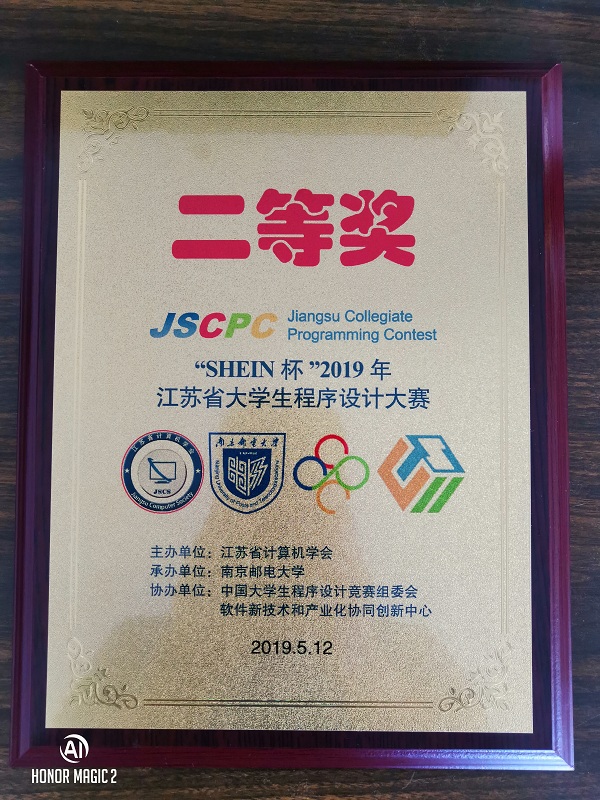 5月11日至12日,“SHEIN杯”2019年江苏省大学生程序设计大赛在南京邮电大学举行,威尼斯9499登录入口 网络安全学院学生团队在大赛荣获二等奖的好成绩。