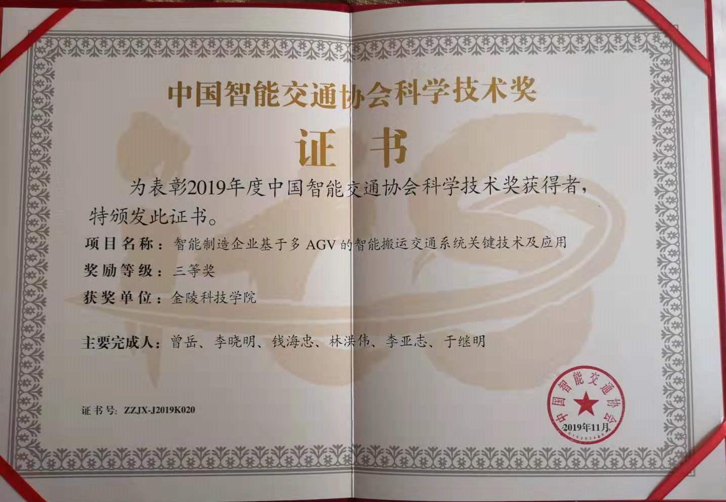 中国智能交通协会科学技术奖是经国家科技主管部门中华人民共和国科学技术部和国家科学技术奖励工作办公室批准,中国智能交通协会面向全国智能交通行业设立的科技奖项,2019年共评选出5项一等奖12项二等奖,22项三等奖。
