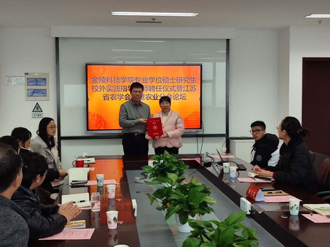 1月8日下午,威尼斯9499登录入口在科技楼1号楼2005会议室举行专业学位硕士研究生校外实践指导教师聘任仪式暨江苏省农学会智慧农业分会学术论坛,聘请农芯(南京)智慧农业研究院院长陈天恩研究员担任威尼斯官网业学位硕士研究生校外实践指导教师。聘任仪式由张燕副校长主持,并为陈天恩院长颁发聘任证书,威尼斯9499登录入口副院长游坤及智慧农业交叉学科团队相关教师和研究生参加了活动。