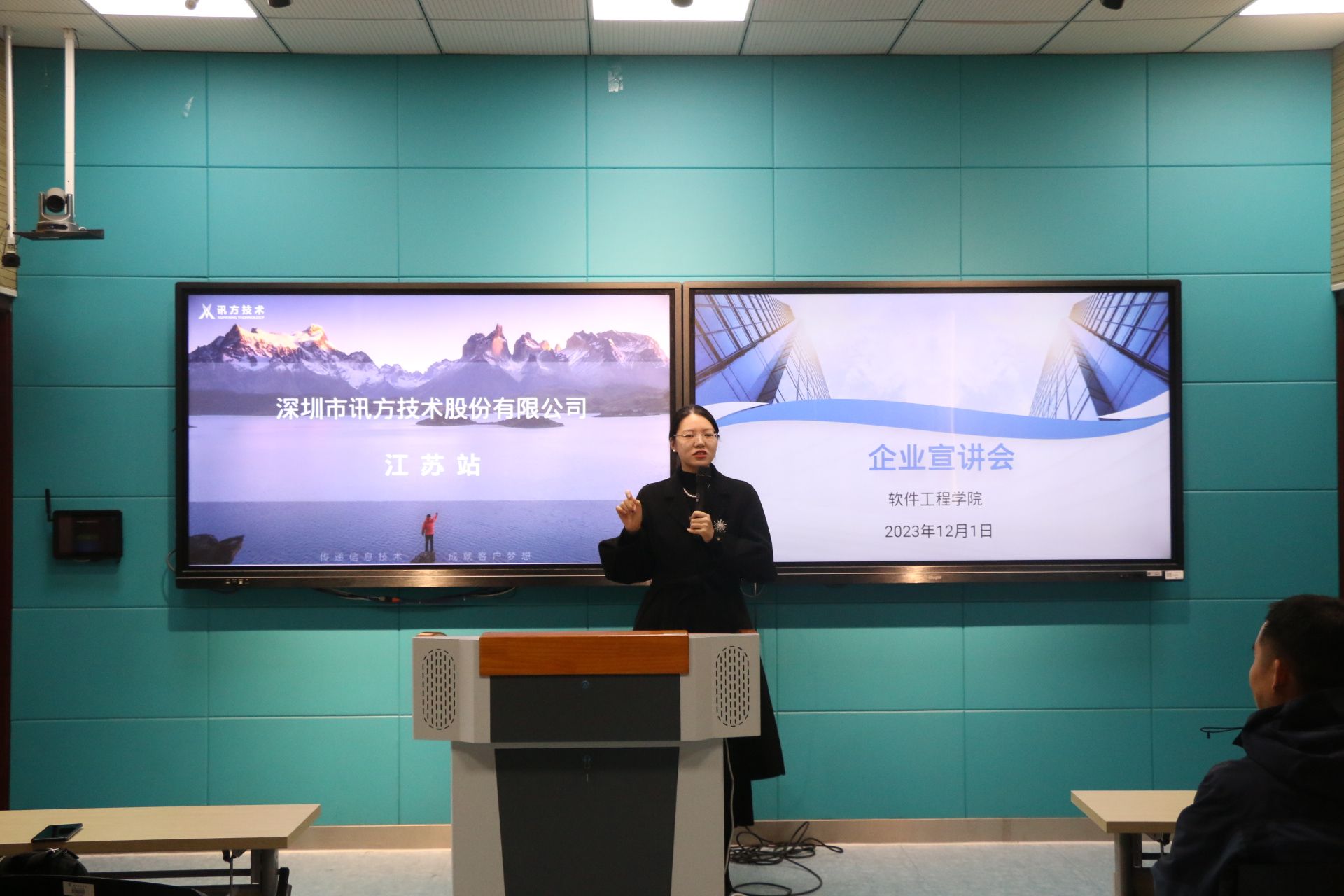 为拓宽就业渠道,推动2024届毕业生尽早就业。12月1日上午威尼斯9499登录入口在科技楼2号楼226教室举办了毕业生专场企业宣讲会。宣讲会邀请到深圳市讯方技术股份有限公司南京分公司舒经理和南京安居瑾家公寓管理有限公司易经理进行宣讲。院党委副书记徐斌、辅导员李勇及部分毕业班学生参加。