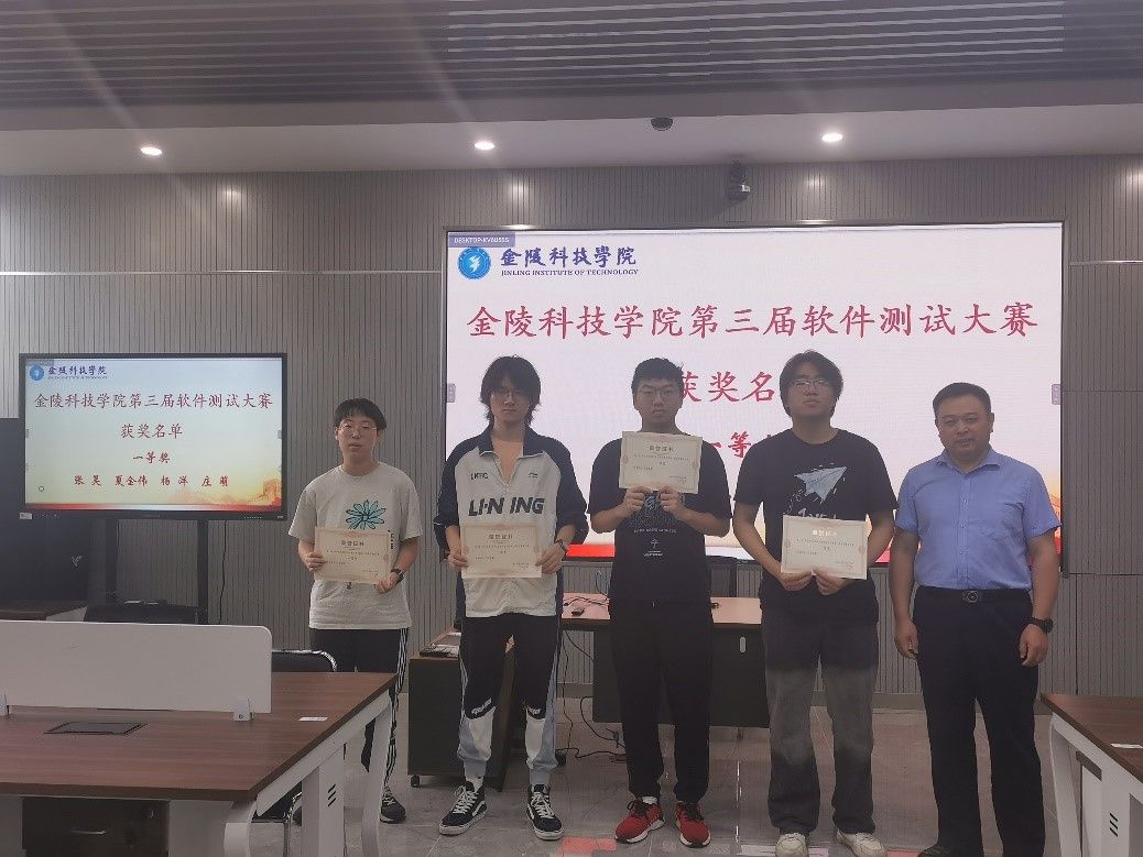 大赛颁奖典礼在科技楼2-311举行,颁奖典礼由软件学院软件测试学科竞赛负责人沈维燕老师主持,副院长徐永华、软件工程应用软件系主任王智钢为获奖选手进行了颁奖。在颁奖典礼上,徐永华副院长对获奖同学进行了表扬和鼓励,并提出了三点希望:一是以赛促能,持续提升学生实践能力,拓展学生能力培养途径,以学科竞赛引导学生积极参加专业实践和应用创新;二是学院会继续支持软件测试比赛,并希望形成软件测试学科竞赛团队,以老带新,不断提高竞赛水平;三是通过校内软件测试大赛,宣传发动更多同学关注和参与全国大学生软件测试大赛和蓝桥杯测试比赛,并争取取得更好的竞赛成绩。